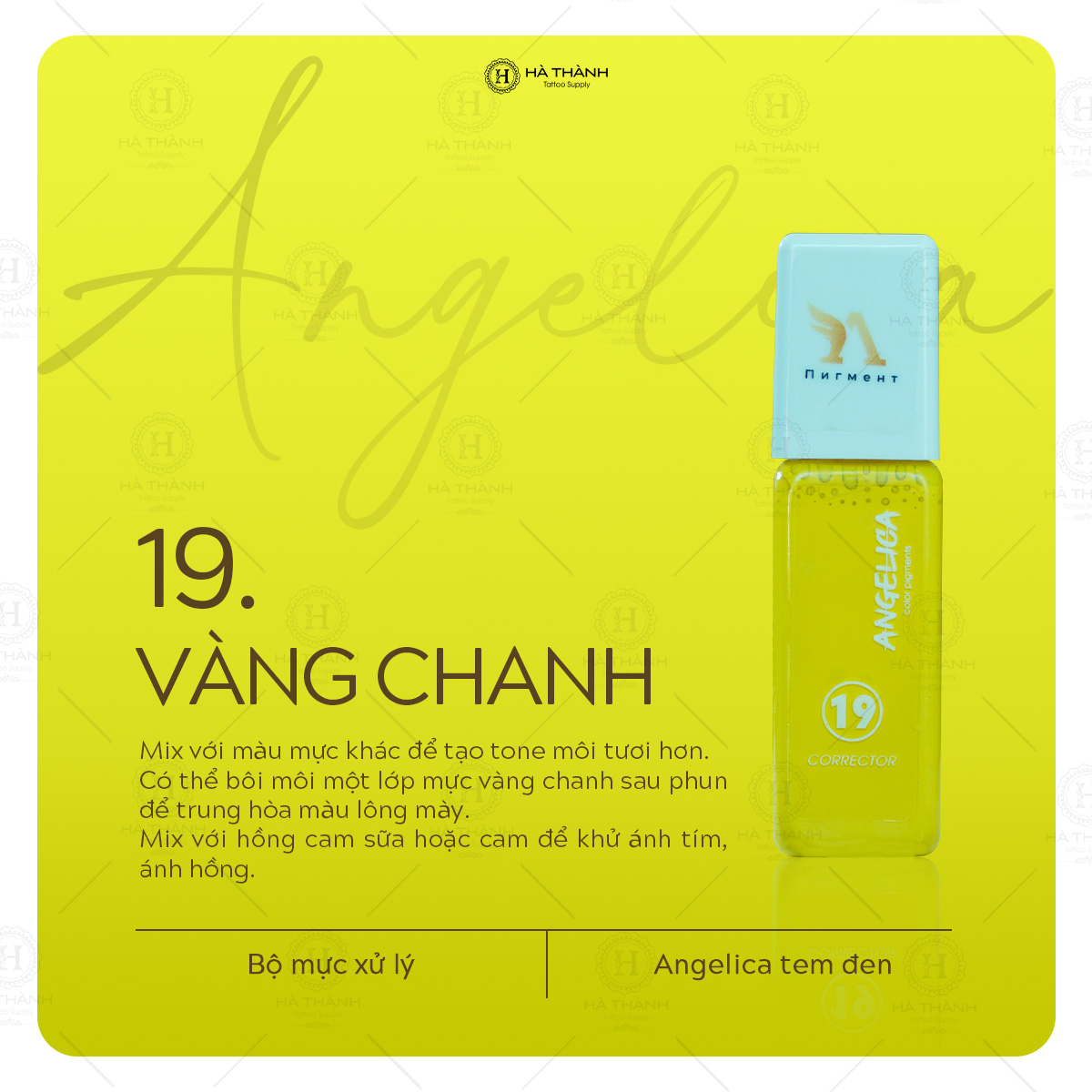 - 19 – Vàng chanh: Pha cùng các màu khác để làm sáng tone môi, khử ánh tím và ánh hồng.